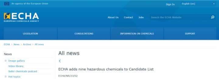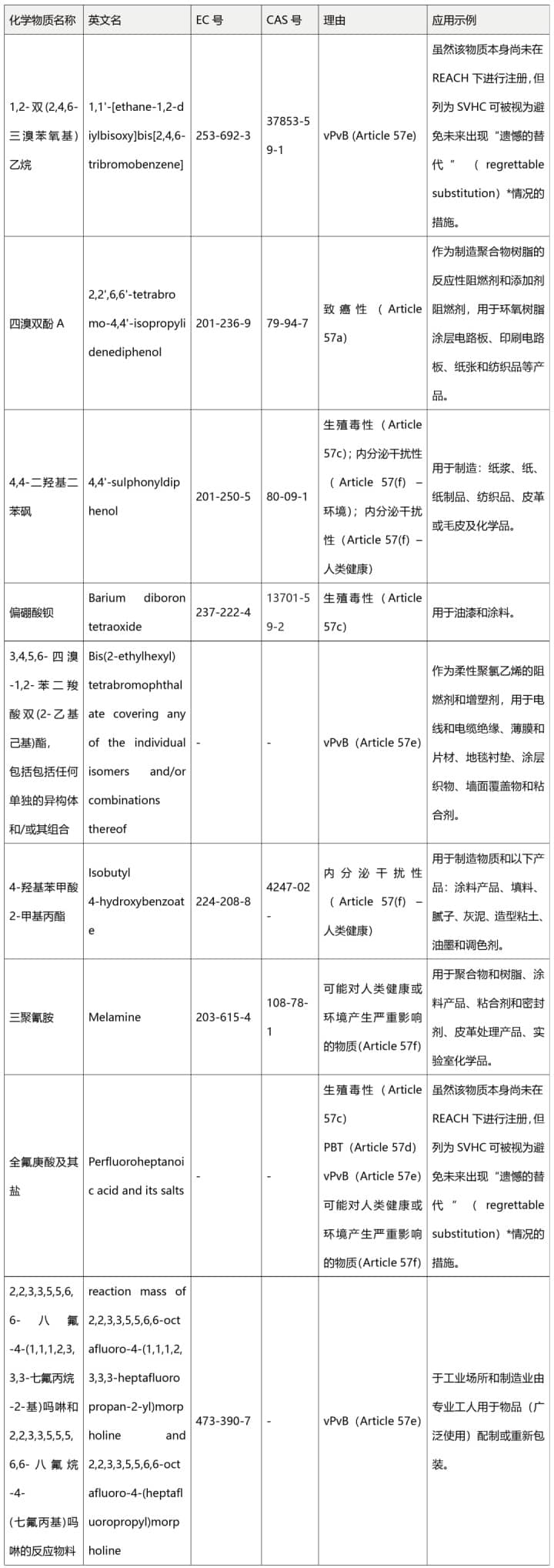 ECHA成員國(guó)委員會(huì)確認(rèn)將這些物質(zhì)添加到SVHC物質(zhì)清單中。