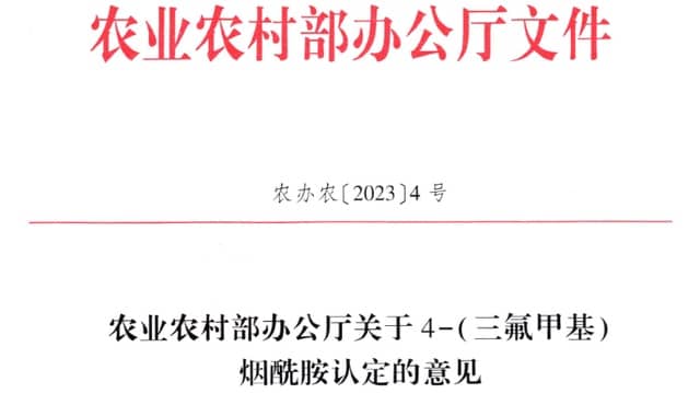 官方發(fā)布 | 4-(三氟甲基)煙酰胺未完成我國農(nóng)藥登記,禁止在殺蟲劑中隱性添加
