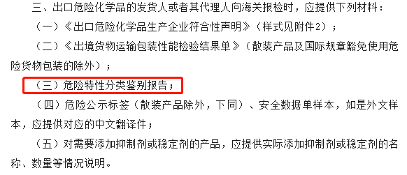 除此外,對于危險化學品/危險貨物的監管人員,處于生產、貿易、運輸等階段的安全要求,也需要提供危險特性分類鑒別報告。對于非危品,在報關時,需要依據當地海關的要求,來判定是否需要提供危險特性分類鑒別報告。