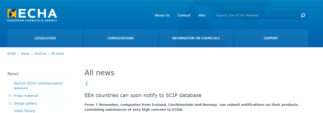根據ECHA官網消息,自今年11月7日起,在歐洲經濟區(冰島、列支敦士登和挪威)供應貨物的公司,將履行向歐洲化學品管理局(ECHA)的SCIP數據庫提交報告的義務。