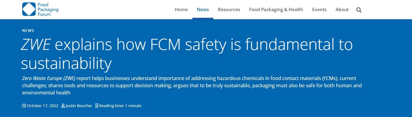 歐洲零廢棄組織(ZWE)于2022 年 10 月發布一份報告,概述食品接觸材料 (FCM) 中化學物質的安全性是實現真正可持續性的重要組成部分。它介紹了消費者和監管機構對實現包裝循環經濟日益增長的需求;各種包裝類型是判斷物質中是否存在危險化學品的最新科學證明;以及目前包裝供應鏈中化學物質缺乏監管指導和透明度不足所帶來的挑戰。