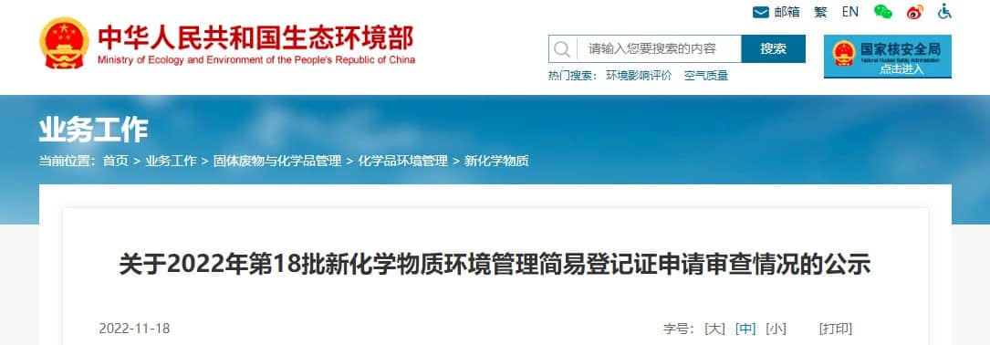 根據《新化學物質環境管理登記辦法》(生態環境部令第12號,以下簡稱《辦法》),我部對Rhodia Operation SAS等單位的13份新化學物質簡易登記申請材料進行了審核,符合相關要求,擬批準登記,詳見附表。