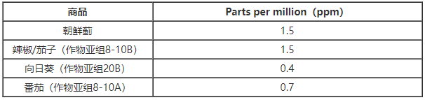 美國環保署就其毒理性、飲食暴露量以及對嬰幼兒的影響等方面進行了風險評估,最終得出結論認為,以下殘留限量是安全的。擬修訂內容如下: