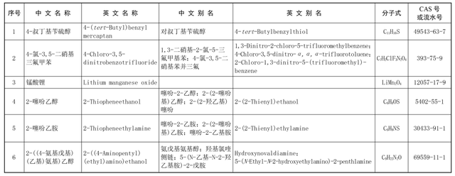 ▌列入《中國現有化學物質名錄》的6種符合增補要求的化學物質