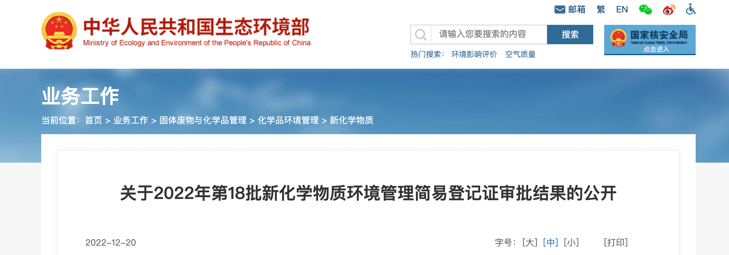 關于2022年第18批新化學物質環(huán)境管理簡易登記證審批結果的公開