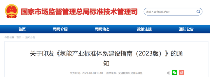 國家市場監管總局8月8日消息,近日,國家標準委、國家發改委、工信部、生態環境部、應急管理部、國家能源局六部門聯合印發《氫能產業標準體系建設指南(2023版)》(以下簡稱《指南》)。這是國家層面首個氫能全產業鏈標準體系建設指南。