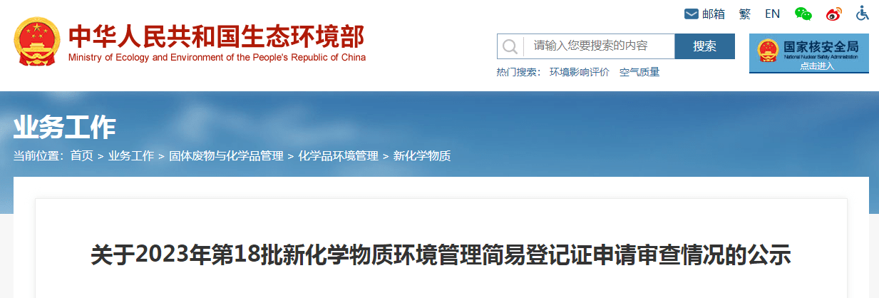 中國新化學物質登記