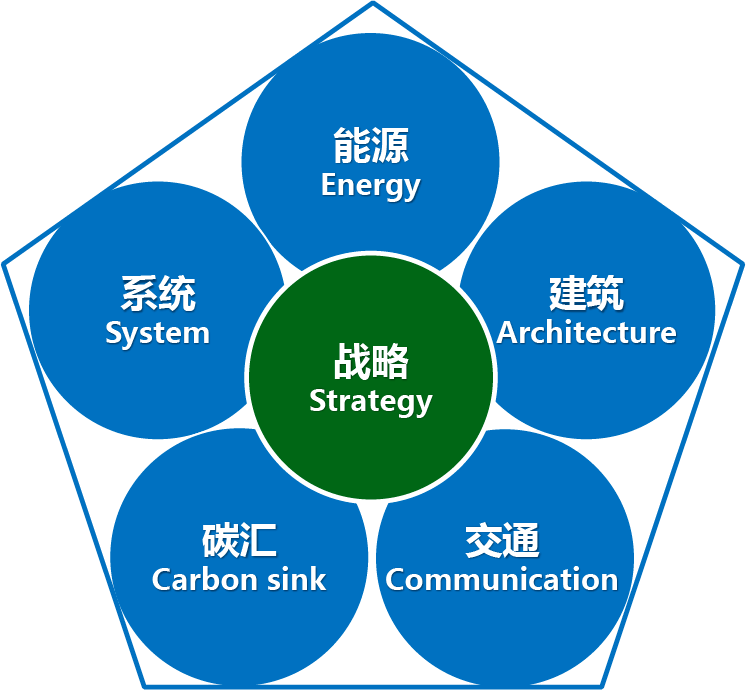該方案從零碳園區戰略(Strategy)、能源(Energy)、建筑(Architecture)、交通(Communication)、碳匯(Carbon sink)及系統(System)等六個方面,共同構建零碳園區,同時也被簡稱為零碳園區SEACCS模型。