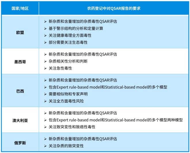 ▌各個(gè)國家地區(qū)農(nóng)藥登記中對(duì)QSAR報(bào)告的要求